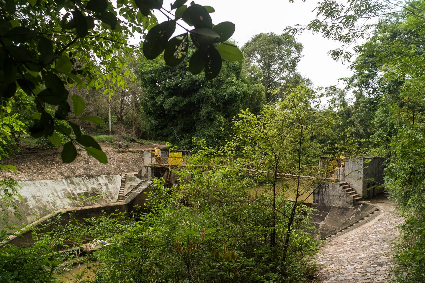 Crossing a dam and the Siem Reap River.