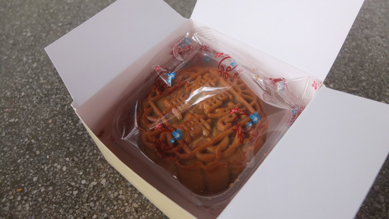 Everything is in the title but you can have more information on that Wikipedia page :-) I’ve met Dave again today as we do minimum once per week (we must take a picture before I leave Singapore!). We first had lunch at the same food centre next the Marine Parade. Then we walk around the place and finally had a coconut at his place. Dave always wants to buy me something. Today, I did not let him spend his money for me so he gave me one of those mooncake. I’ve never eat something like this before. There is four major chinese festival during the year and the mid-autumn one is one of them. In that case, people offer a mooncake to their family or friends. It’s a famous delicacies and it’s sometimes hard to find because it sold out quickly. Lucky me! I can test one :-) Thanks Dave!
