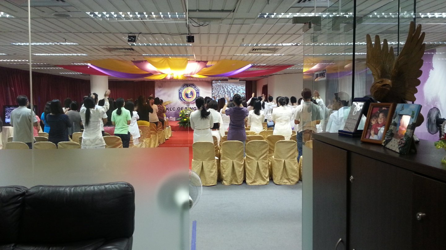 I still have that feeling that this place is a sect (sorry Vic). Every sunday, people come here (like any church). The thing is, most of them are Filipinos women. To me, the reason is that the man that they believe in is from the same country. FOr about 2 hours, they watch a screen where a meeting is transmitted from internet. The Guy, Apollo Quiboloy, is travelling around the world and does conferences in big cities. He believes that he incarnates god himself. He tries to convert as much people as he can to repent so they will go to heaven, the real one :-) Well, I cannot believe in a story like this, sorry.
