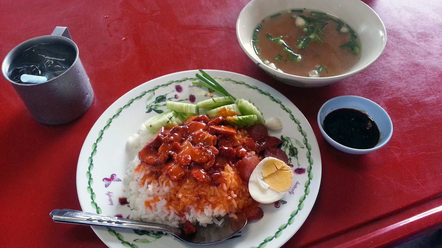 That’s breakfast time :-). Some rice, pork, egg, cucumber and a soup for 35baht (0.88€ > $1.36AUD). That’s worth it I think :-) Plus I have unlimited cold water.
