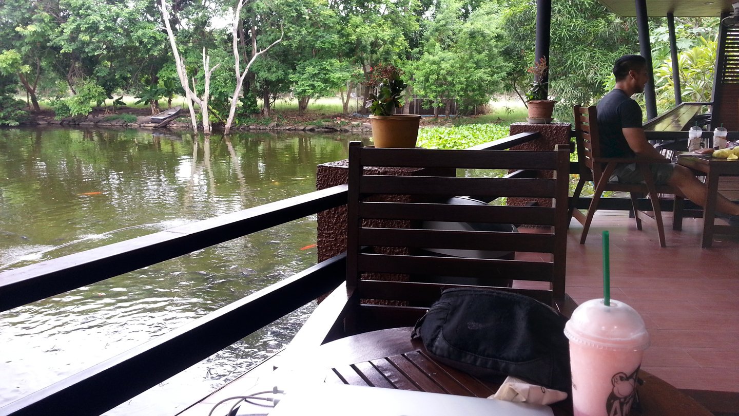 Today I arrived in Kalasin, the second biggest city in Eastern Thailand since I left Laos. Right at on the edge of the town there was another café along the road so I stopped there. Actually I’ve saved most of them on google map so I can easily plan my day. I know it’s not really adventurous but that’s not the goal these days. Mainly, I cycle between 30 to 60 kilometres per day, early morning and late afternoon and spend the rest of the day at my “office” :-) Because of this, you can still read what I’m doing AND I can update technically my website too :-) Anyway, when I arrived in Kalasin, I sent 2kg of stuff back to France. I feel much lighter now! No, not really… In fact, I don’t even feel any difference haha.