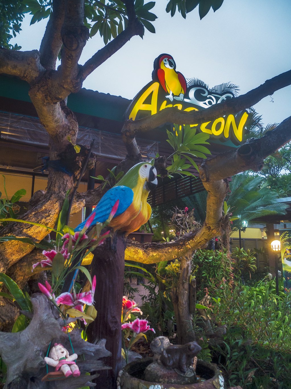 Pas mal l’Amazon Coffee. Bon les perroquets sont un peu kitsch, mais au moins ils ne font pas de bruit !!