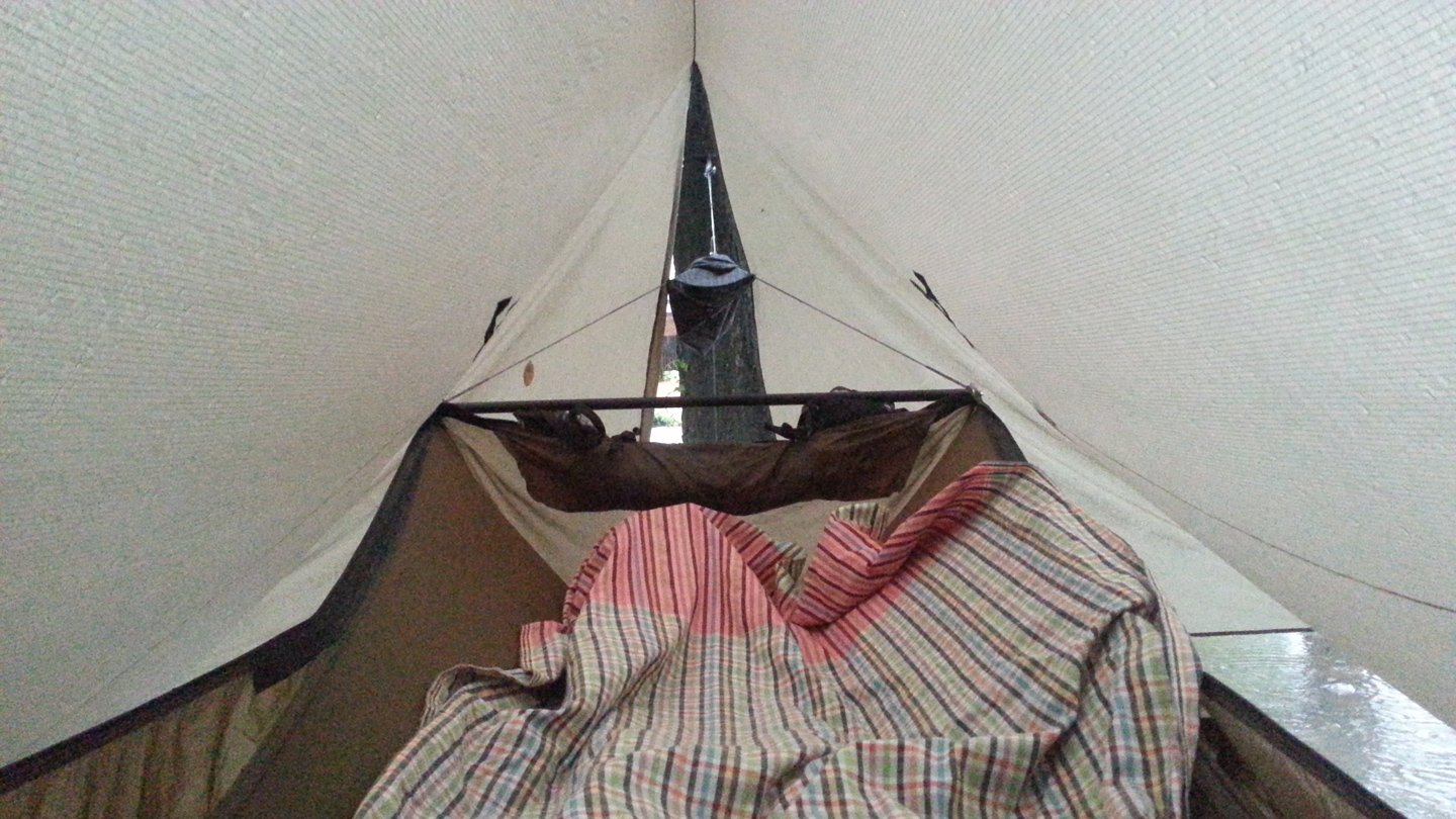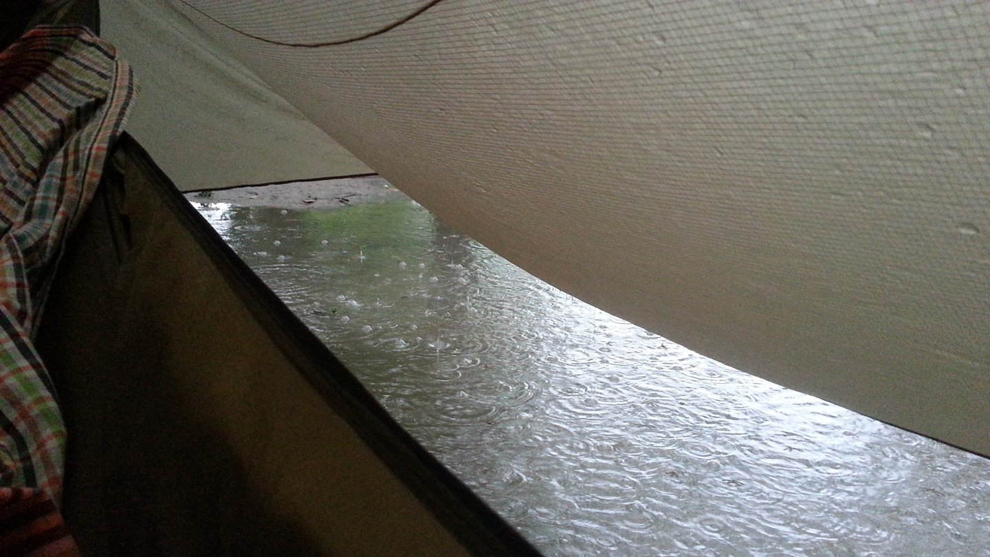 1. Your camp is very efficient ! Even in that much rain, your hammock is dry and looks very comfortable !