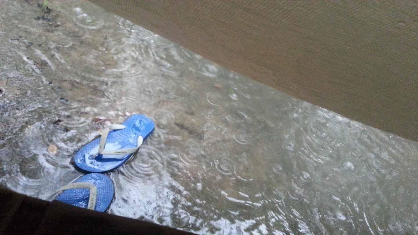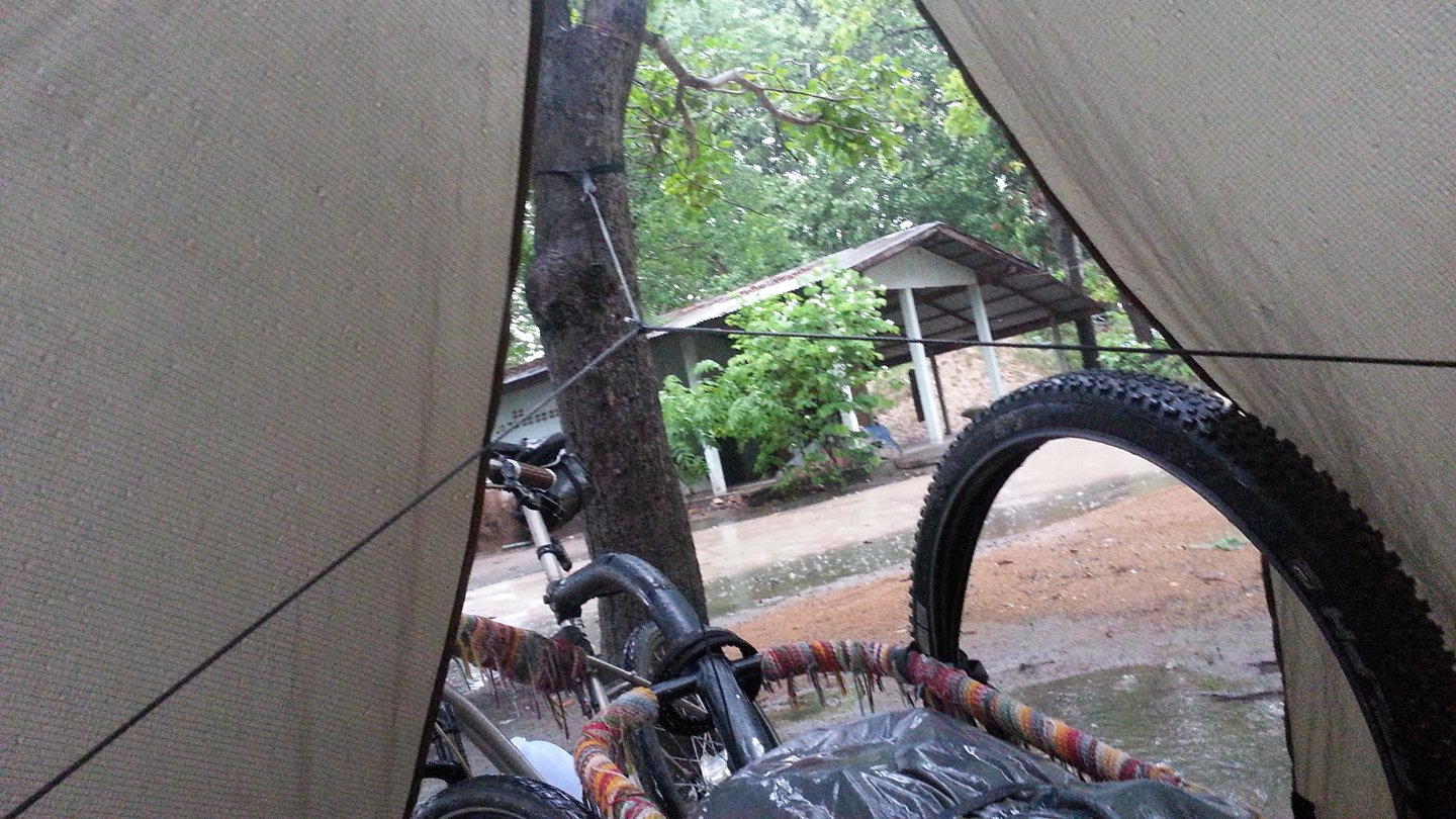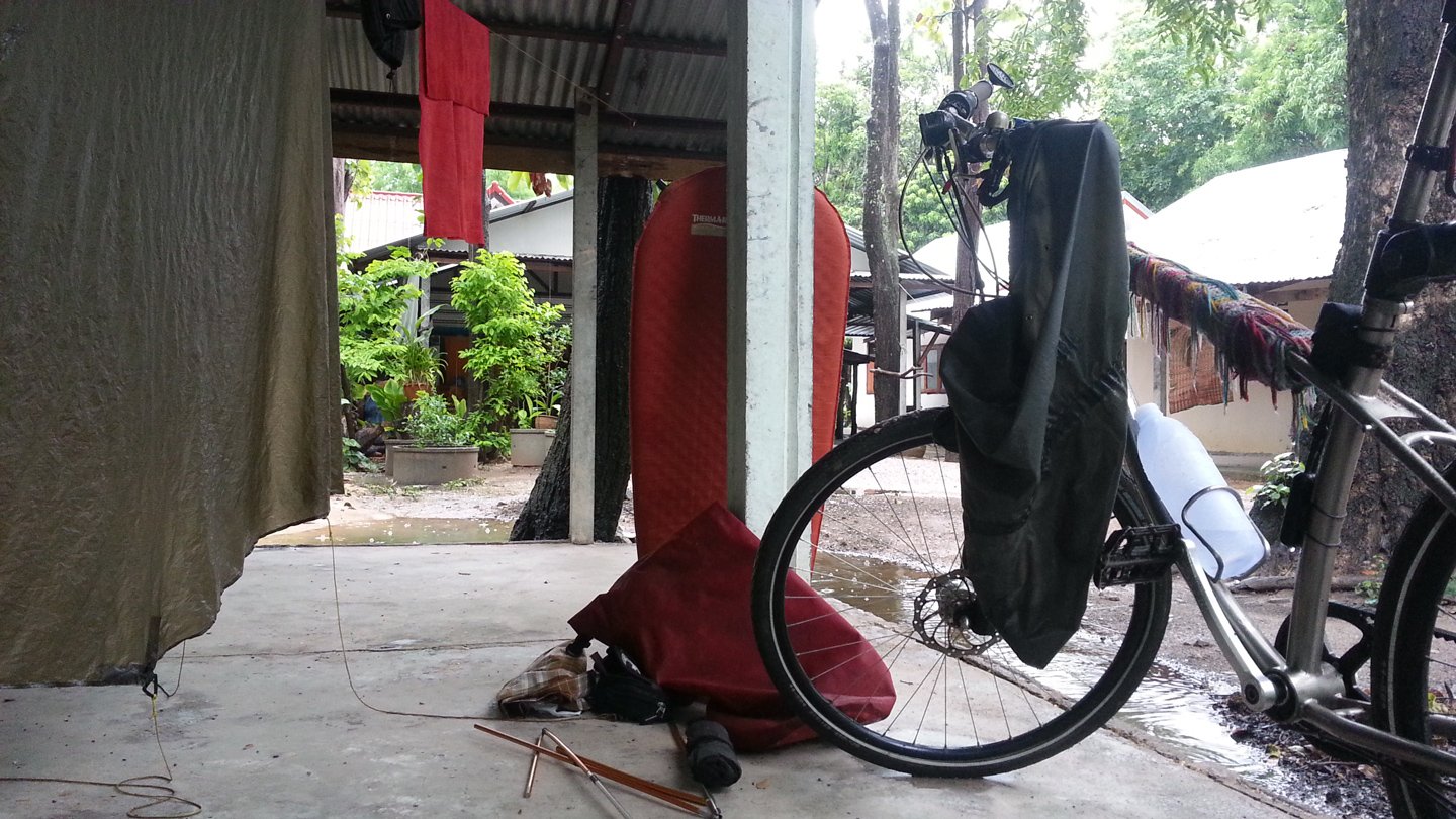 Mmmh, ok, I will move the bike under this shed, then pack the hammock and finally the roof. Then I will wait there until the rains stops or at least becomes me quiet.