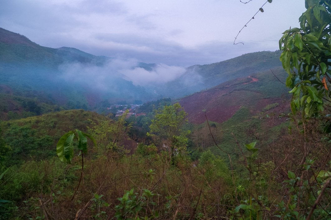 Arf! Another big day today. Right this morning, just after I left the village where I slept, I had to push my bike again and for a while. The first 400 metres climb was so steep! I was so tired too! Bloody hill! Once I arrived to the top, a roughly 6 kilometres downhill brought me back down to 600 metres high. I was in the bottom of giant bowl except that the next climb ahead was 1000 height difference… Every day I’m getting more tired obviously but every day the road becomes more difficult. At this pace I won’t be on time in Vientiane… These mountains (or big hills) are killing me!