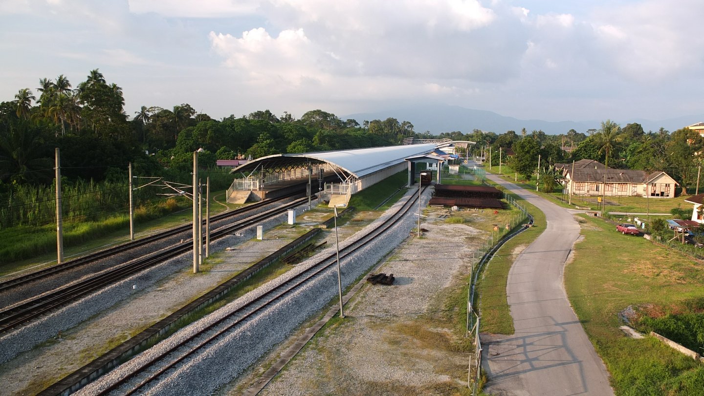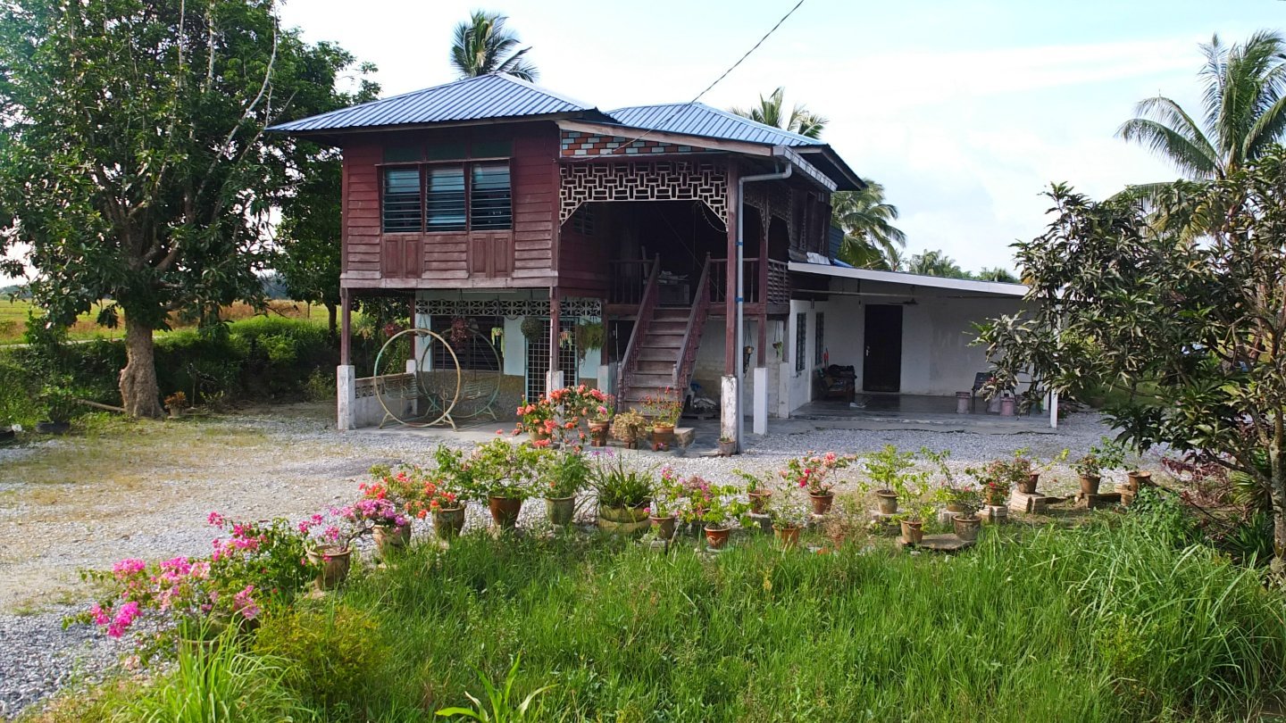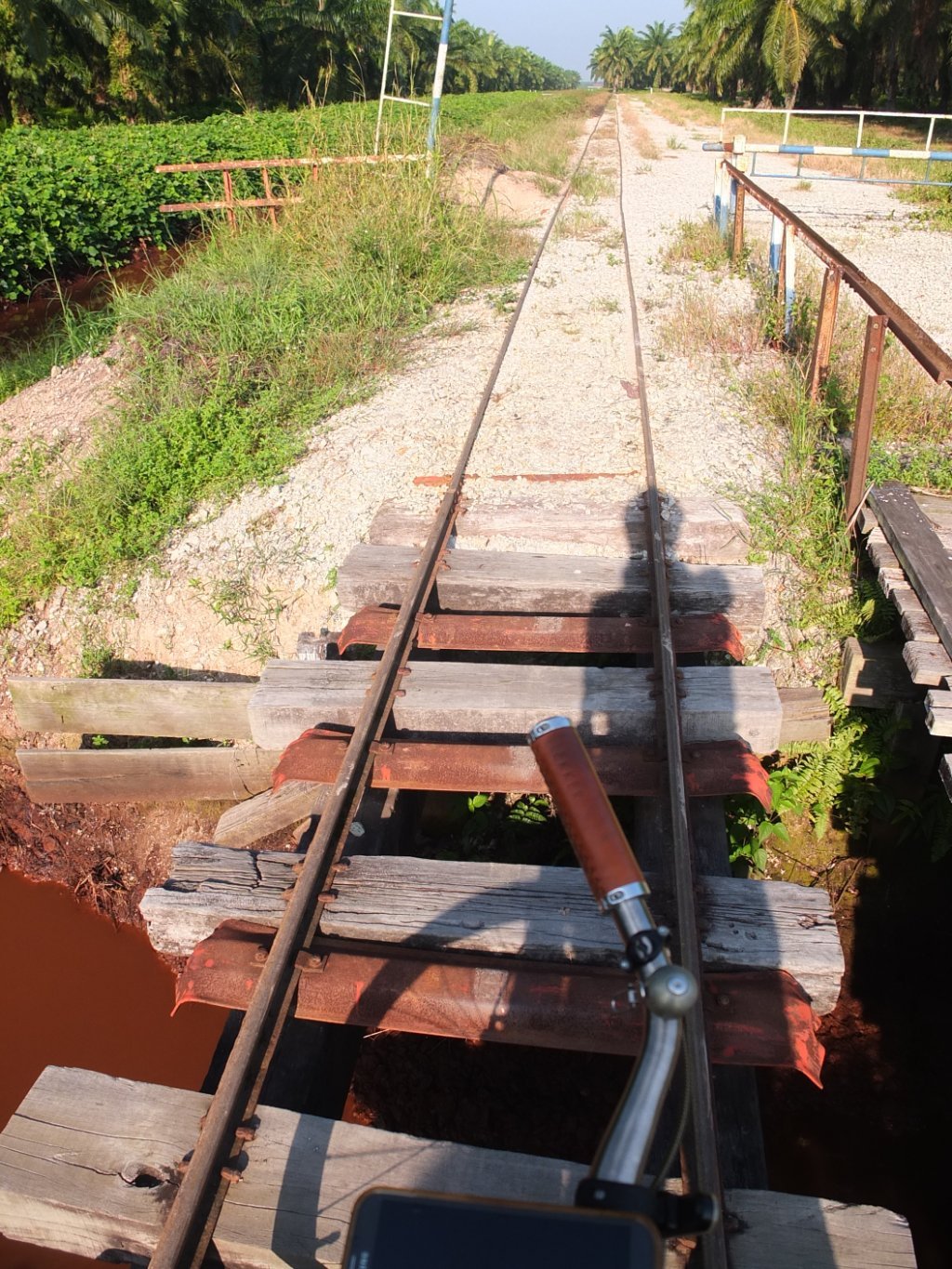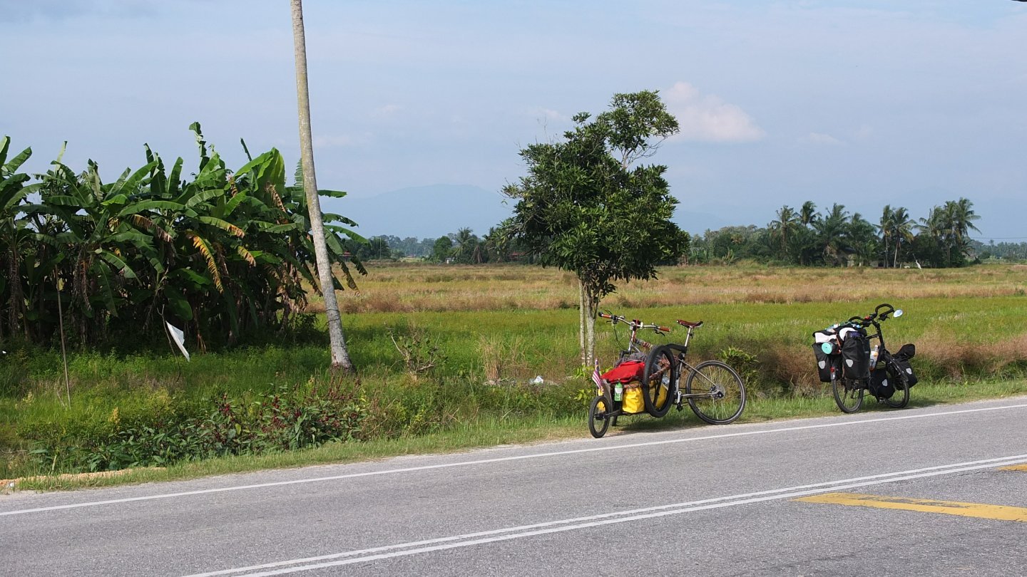 Finally we made it to Tapah road, a tiny village with a huge train station where no train stops… You see the house on the right hand side? We are going to sleep behind it tonight. There is grass for Stephane and trees for me.