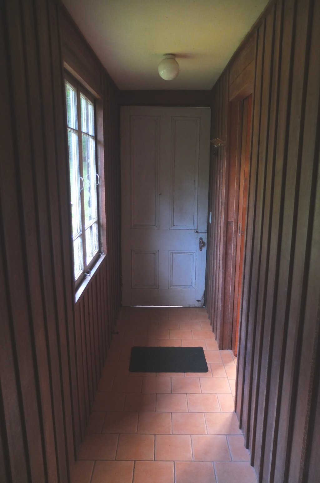 Let’s start the visit of the inside now. This is the entrance with the bathroom on the right side.