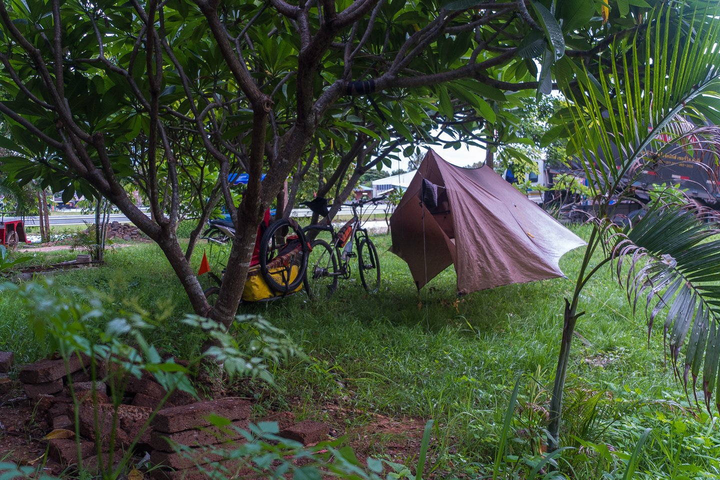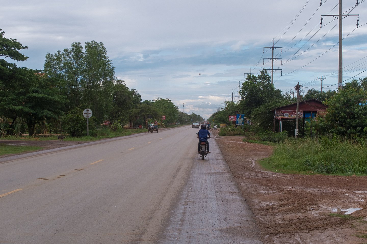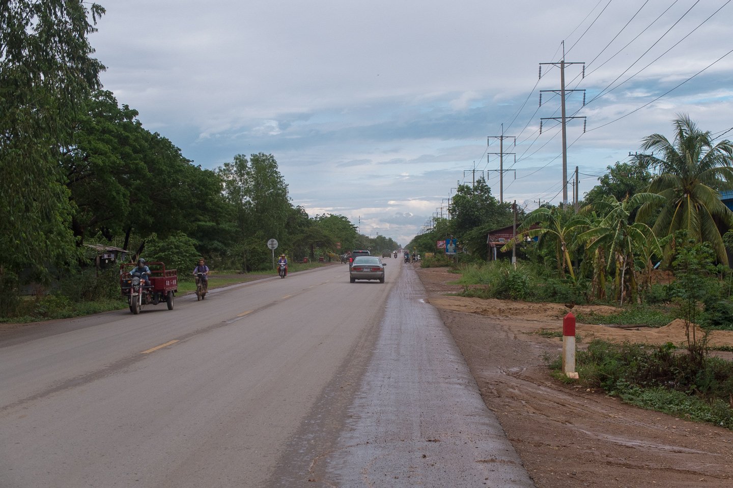 Cambodians drive on the right side. I’m cycling on the main road here, “National Road 6”. It goes straight to Siem Reap which I will reach tomorrow or in two days max. I expect to stay there 4 to 5 days (well, I’m going to stay a tiny bit longer than that but I don’t know it yet).