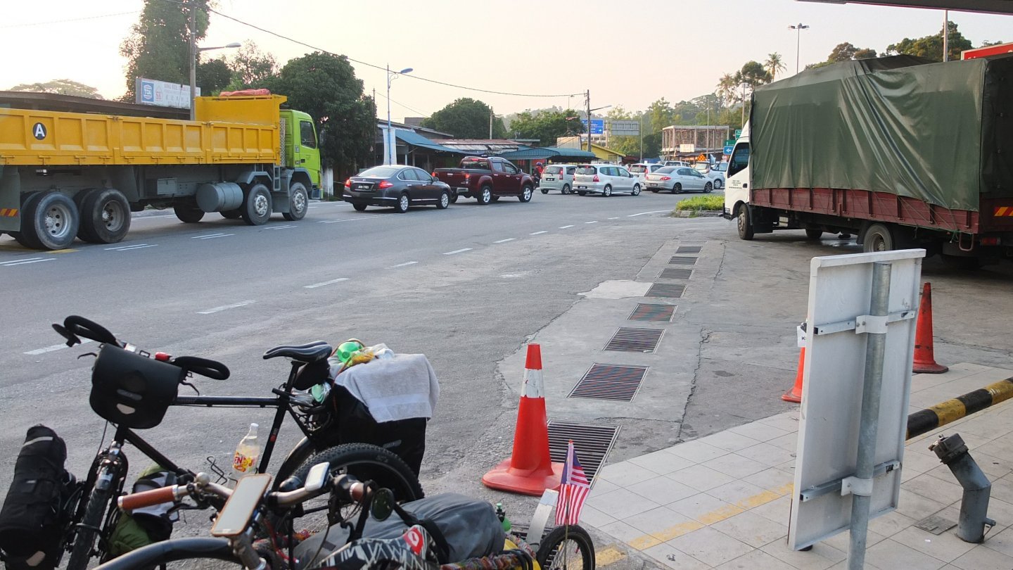 Break time. We stopped at the petrol station to filter some water and then we will have something to eat.