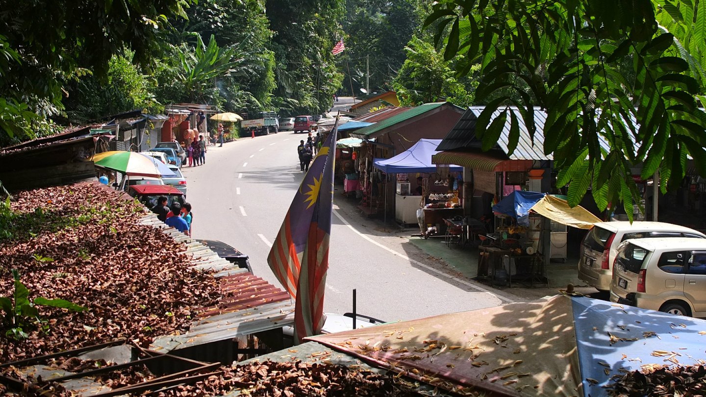 The next step to get to Cameron Highlands is 38km long. That should take around 4 hours minimum. If we want to arrive before dark we cannot stay 3 or 4 hours at the waterfall. This time it’s 1:30pm and we are back on the road.