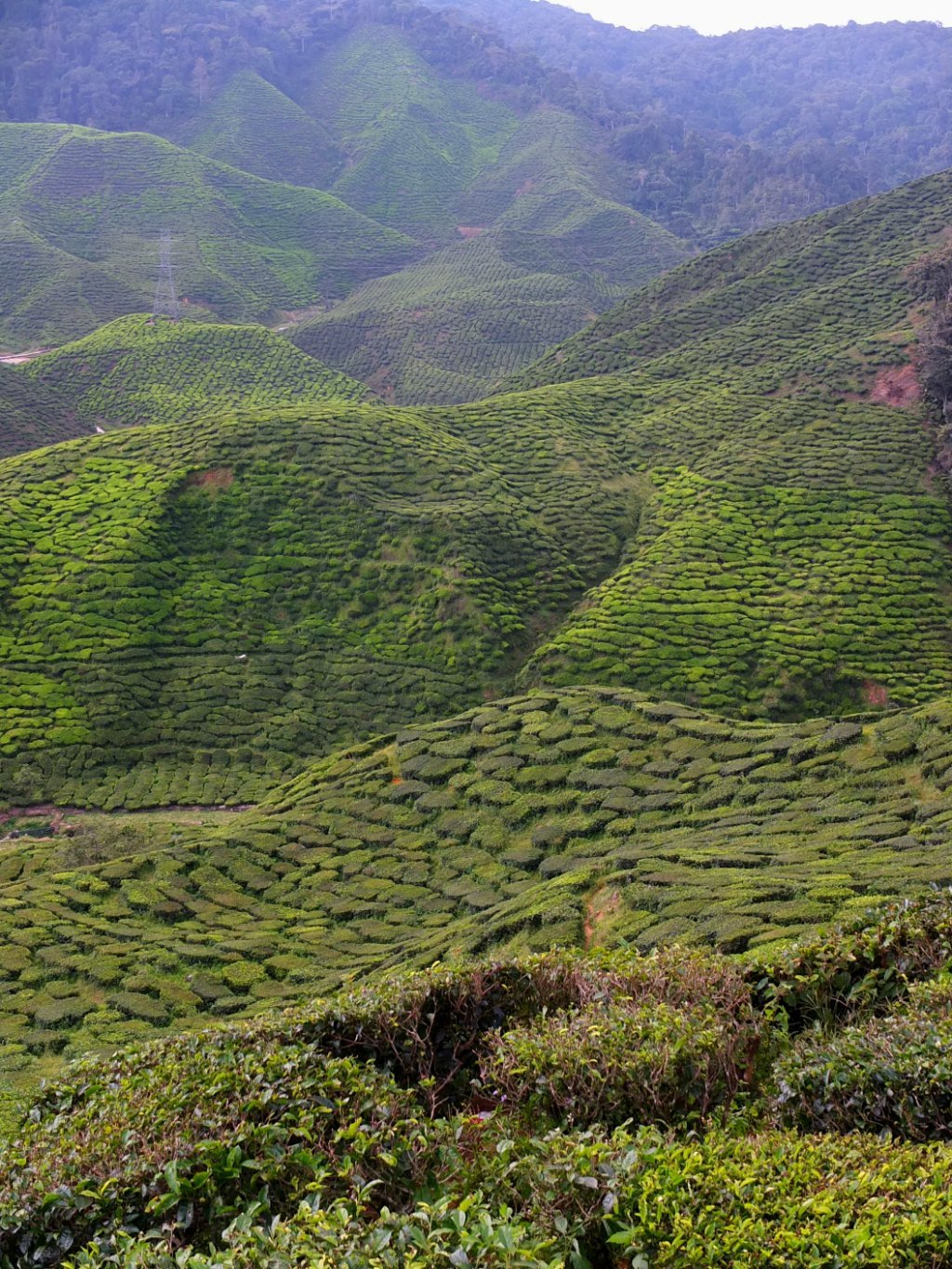 1. Ces collines de thé sont impressionnantes. Après les espaliers de riz, et les étendues de palmiers, il ne faut pas s’étonner. En tout cas la perspective est agréable. Je suppose qu’ils ont du sacrément déboiser pour ces cultures, on voit la forêt dense au fond sur tes photos. J’adore ton menu spécial au resto : Frites !!! Lol