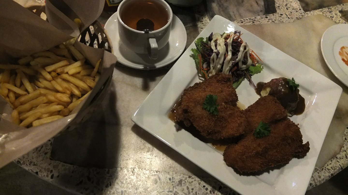The food is more expensive but delicious. 27.50 Ringgit for a shared tea pot, French fries and a meal. It my budget for a day but that’s exceptional tonight :-)