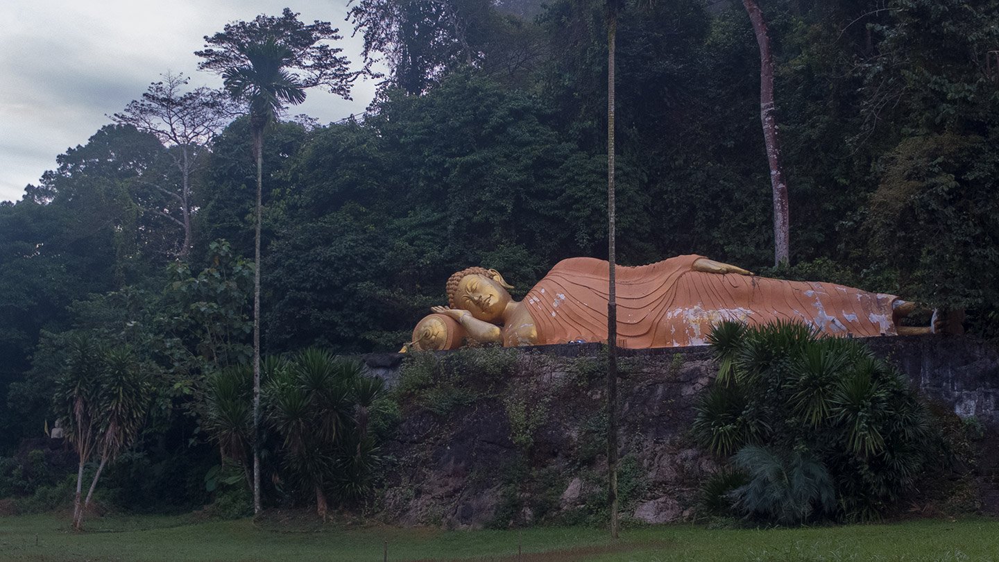 As I mentioned in the introduction, the last night was the opposite of what we expected. Once installed and ready to sleep, we realised that the forest in which we were staying was like haunted. Lots of inexplicable noises, like people walking, branches cracking, heavy things falling on the ground… On the top of this, there was some monkeys shouting and fighting not far from us. This noise pollution went on almost all night. Bloody monkeys! Apparently it did not disturb this sleeping Buddha :-)