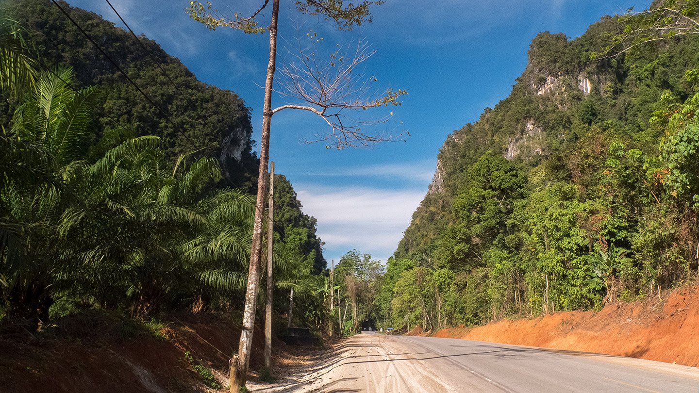 The last break was ok but still too hot. The clouds plus the trees did not help fighting against the heat. Anyway, we are back on the road again. We are now cycling through farms area: Palm oil trees, fish farm and pineapple fields.