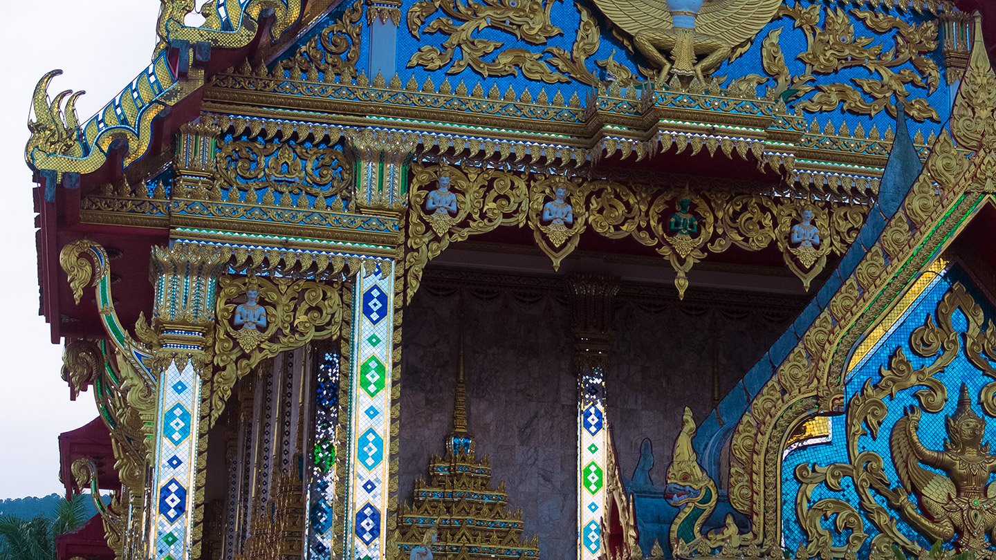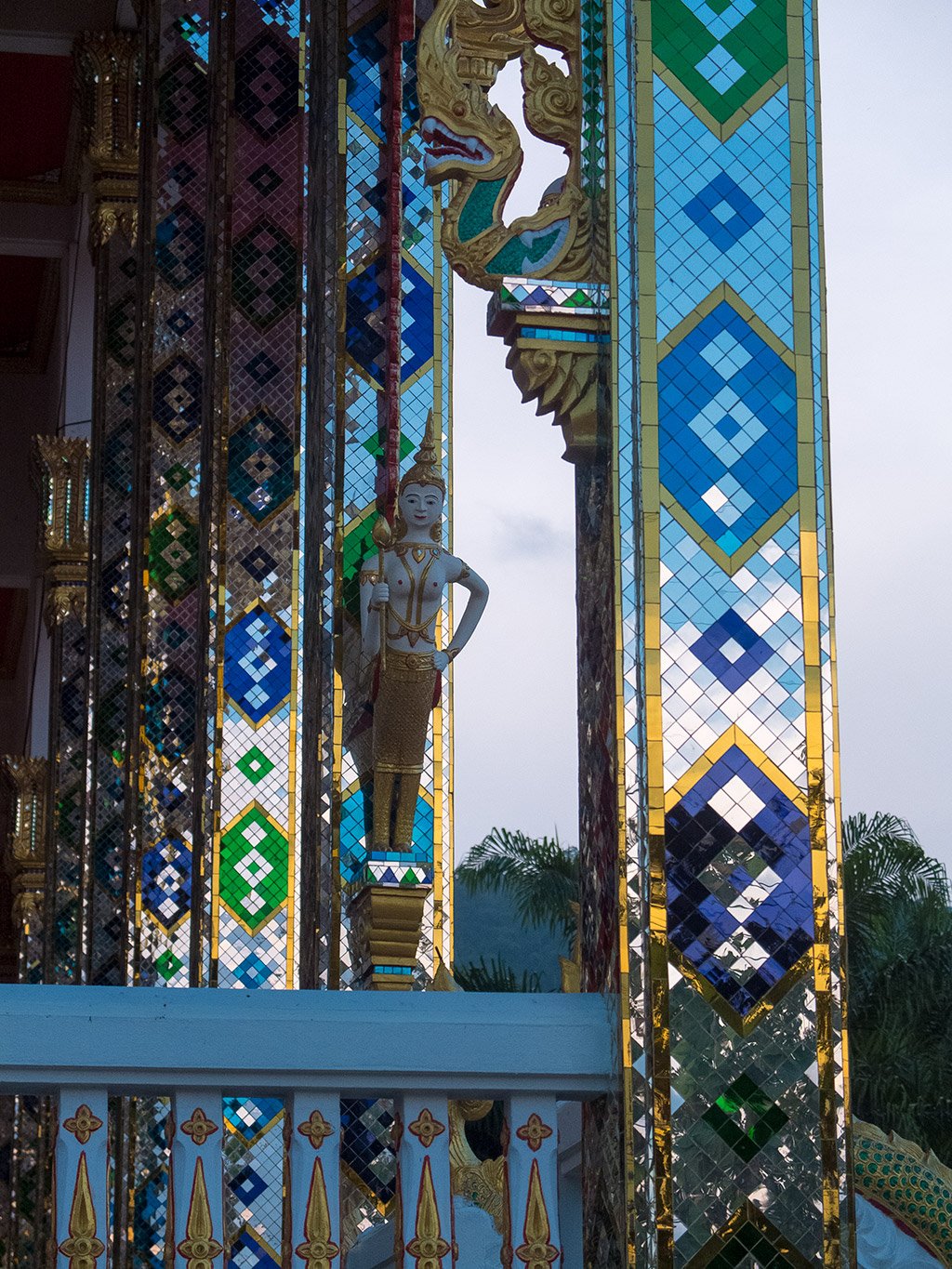 Most of the temple surface is covered with reflective tiny tiles that create patterns and graphics shapes. What a job.