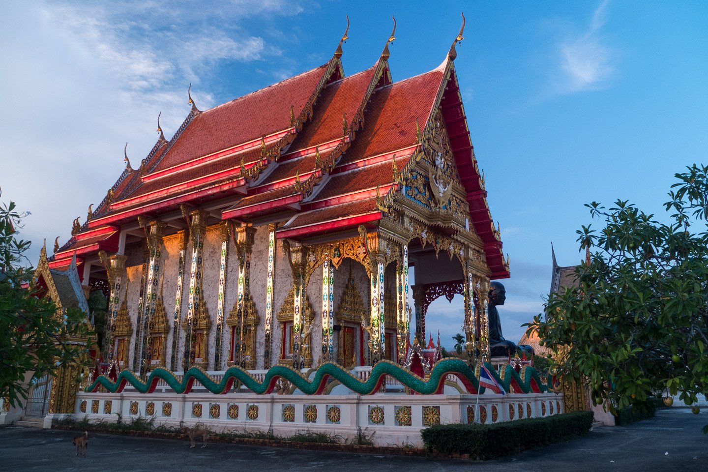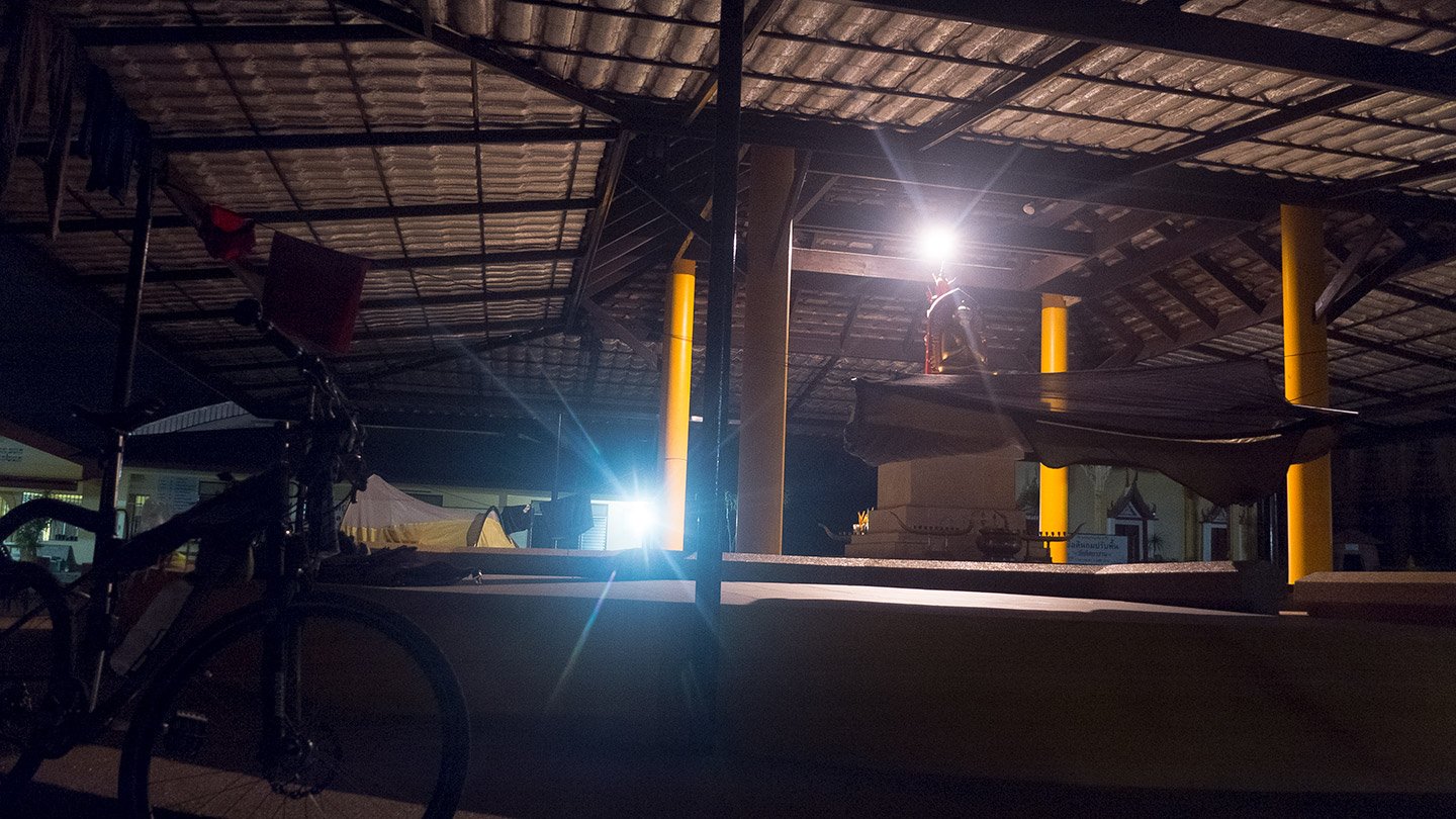 After the temple visit, I’ve spot another river on the map but we could not have any access to the road. Right after that, it became really hard to find a place where to eat. We had to cross the road and ask to a restaurant that was already closed but people still remained. A nice guy who enough spoke english redirected us to an open place. He also told us that there was a buddhist temple 100 metres further after the restaurant on the left side of the road. If we wanted, we could try to ask their if we could sleep somewhere. That exactly what we have done: dinner first and then direction to the temple. As soon as we got their, a dog started barking at us. Quickly after that, a monk came to us. We used body language to ask if we could sleep here. The monk said yes with no hesitation. He even offered water. Then he asked to follow him. He showed us a room with a coffee machine then turned on the light outside and headed to the washroom place. We have toilets, shower and a roof under which where to sleep. Nice :-) Good night!