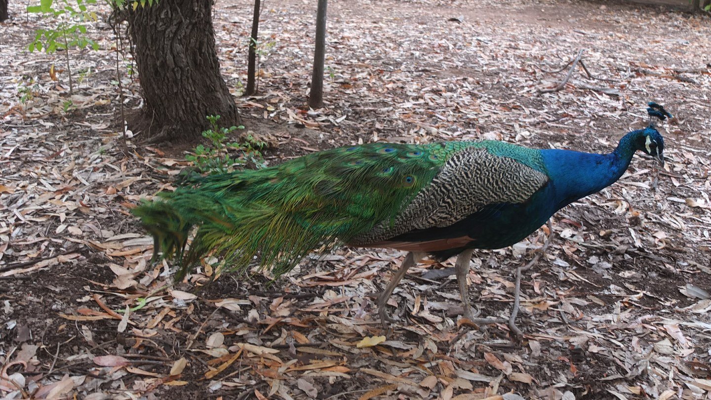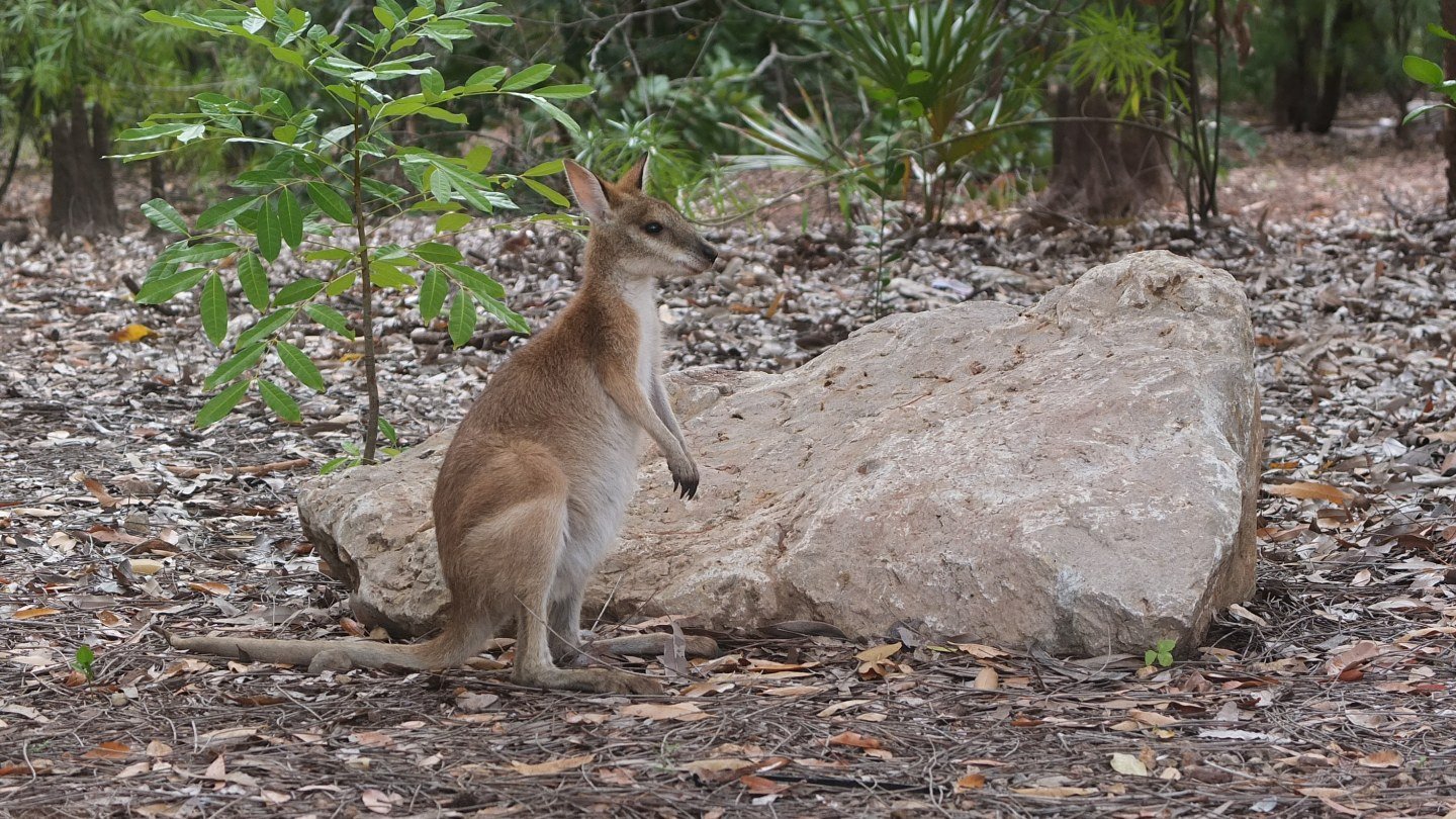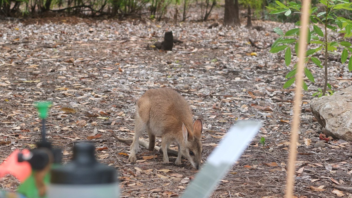 It just stays around, eating some nuts or fruits from the ground.