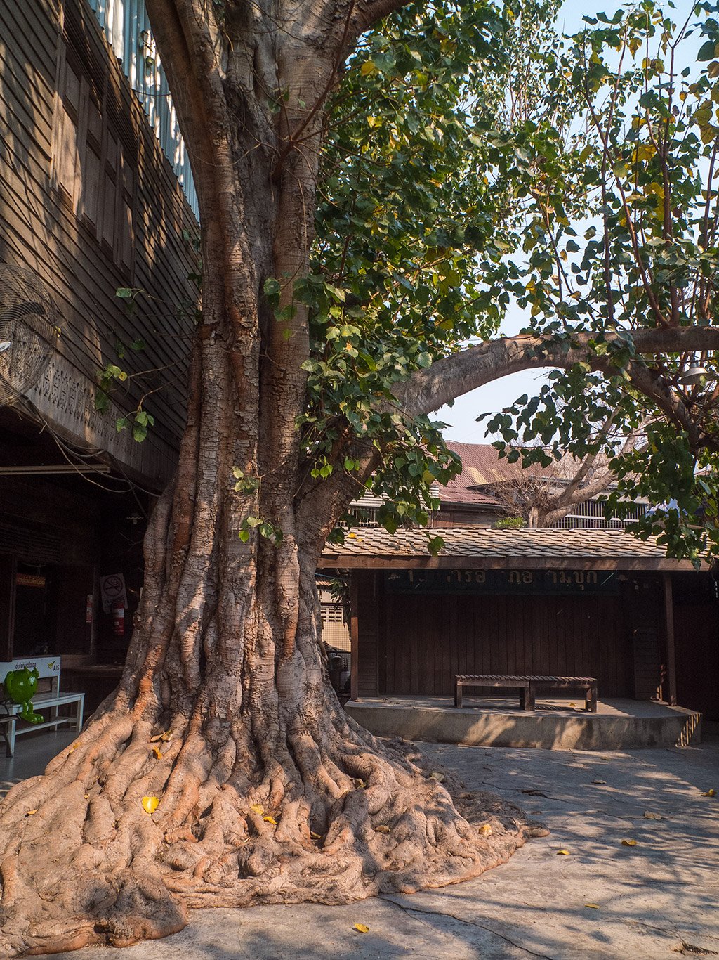 This courtyard looks nice. That tree is impressive.