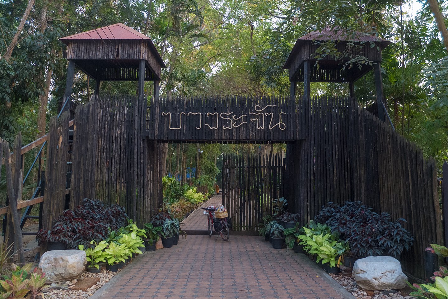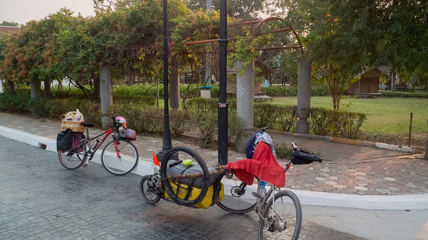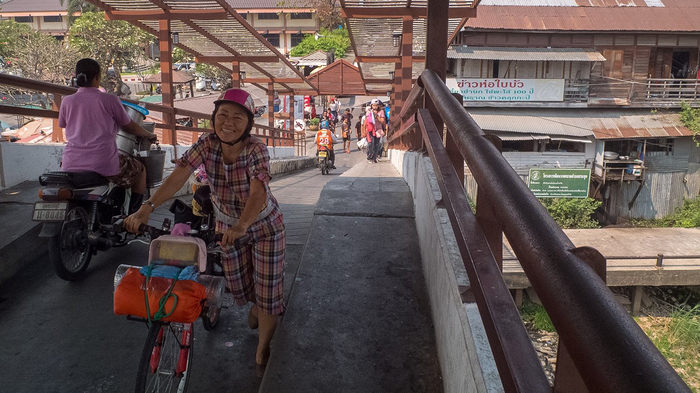 Today we visited a market called the 100 Years Rim Nam Market. We did not plan to visit it, that’s someone at the temple where we slept last night who recommended us. We had to make a small detour only and enjoy some tiny roads. After that we have been cycle all the way without visiting any special place until the end of the day. The last visit was a memorial called Kai Bang Rachan that commemorates the battle against the Burmese (again).