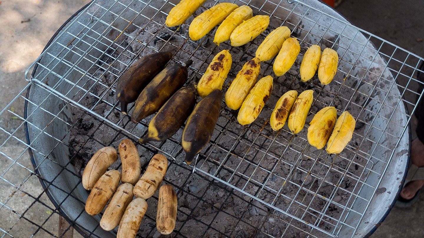 We reached the road again and Pita stopped to pick up her favourite bbq banana (the one on the bottom). To me, they are a bit too dry. I prefer them just fresh, simple.
