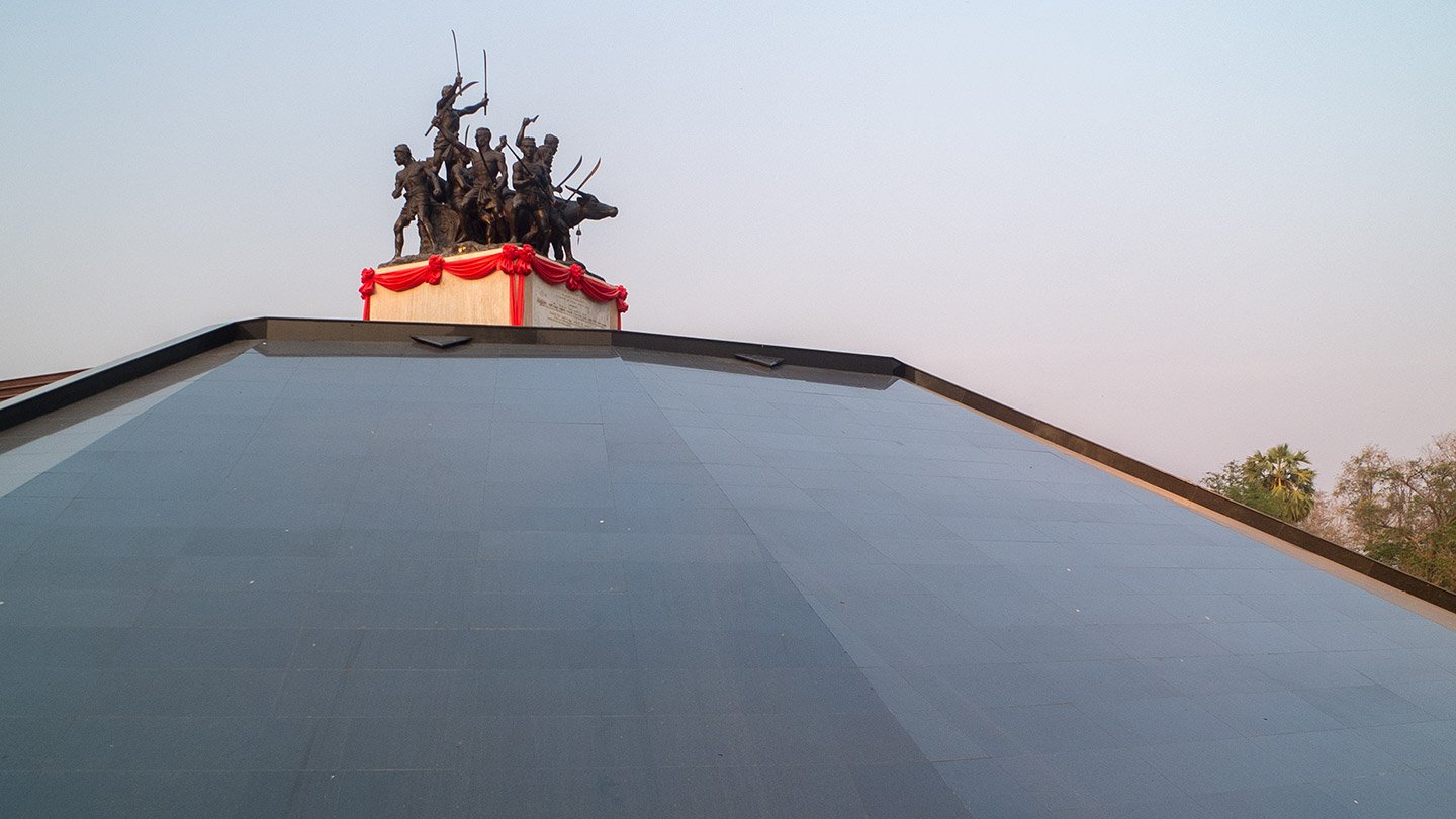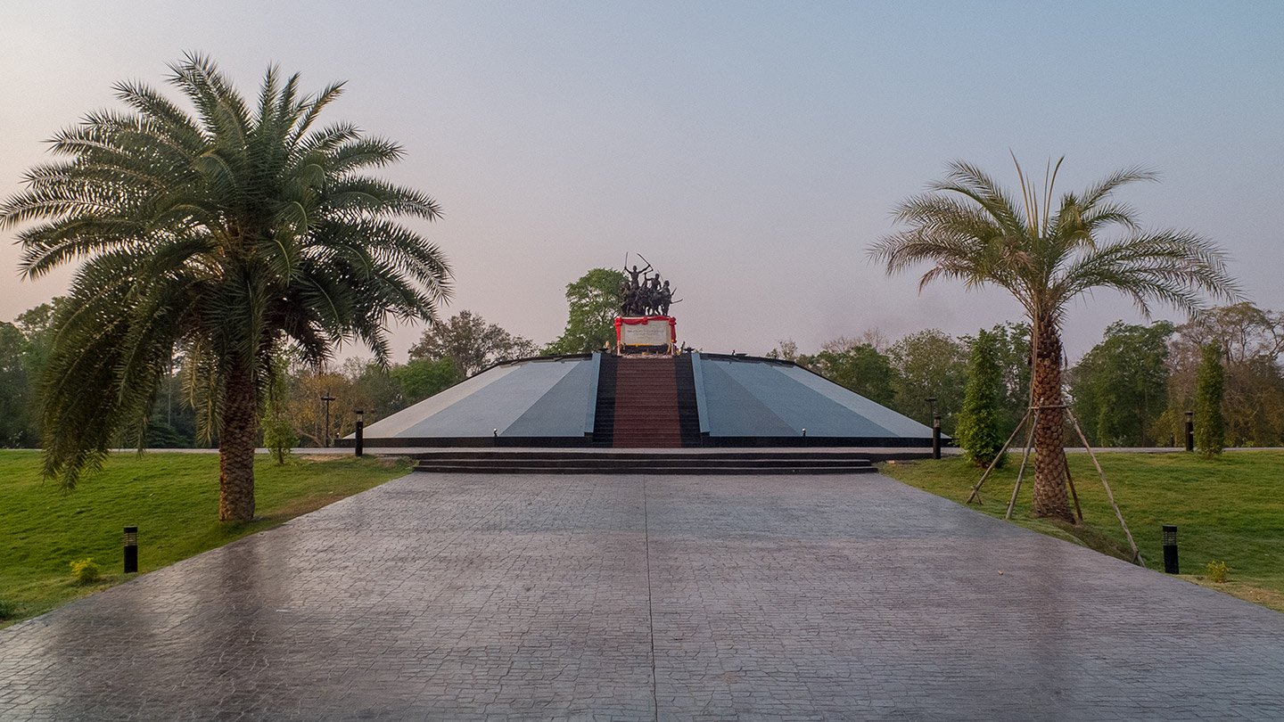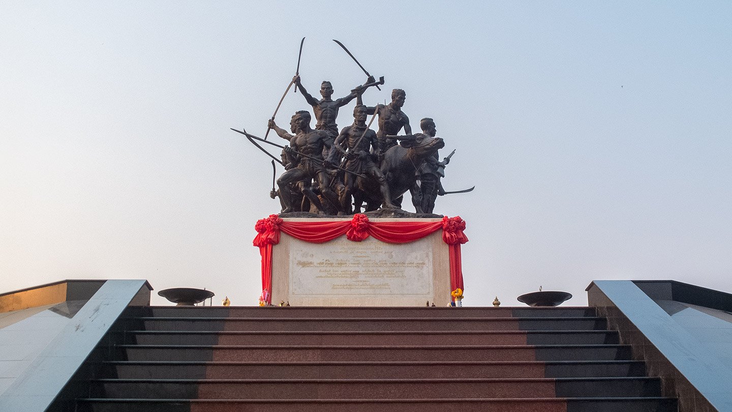 In the 3rd month of the Chicken year 1765 (2308 Thai year), Burma set force in Ayudhya suburb and sent a patrol to persecute villagers. The suffering forced the people to fight, and escaped to set up Kai Bang Rachan (Bang Rachan Camp). The Burmese army attacked, Khai Bang Rachan 8 times for 5 months. Although Thai people were able to defeat the Burmese army up to 7 times with their solidarity and patriotism. Their bravery was inscribed in the history of Thailand and minds of Thai people. The outstanding leaders of Bang Rachan were army, among them was spiritual leader called Arjan Thammachot, a monk of Wat Khao Nang Buat temple. (That text is coming from the sign at the entrance).