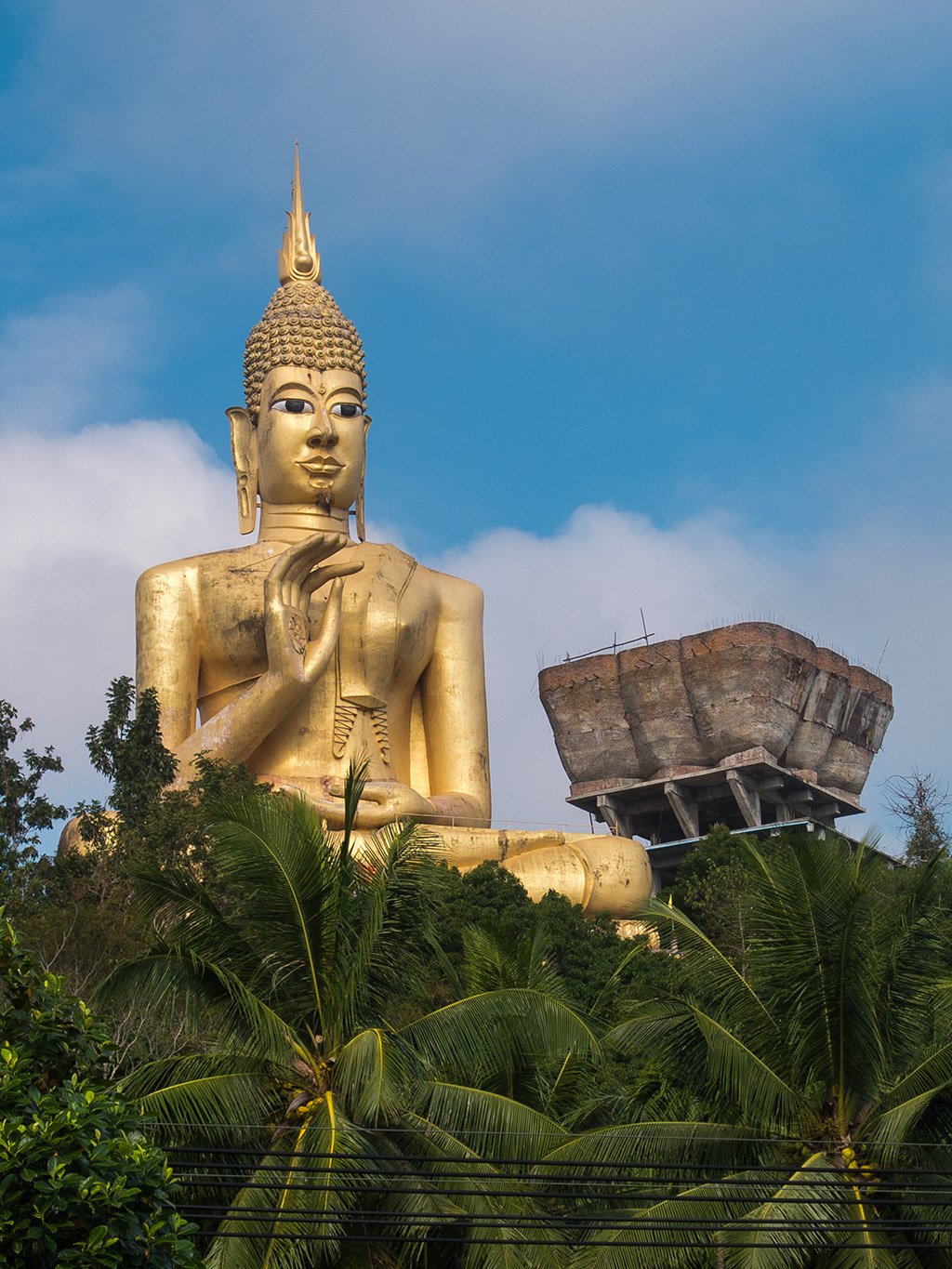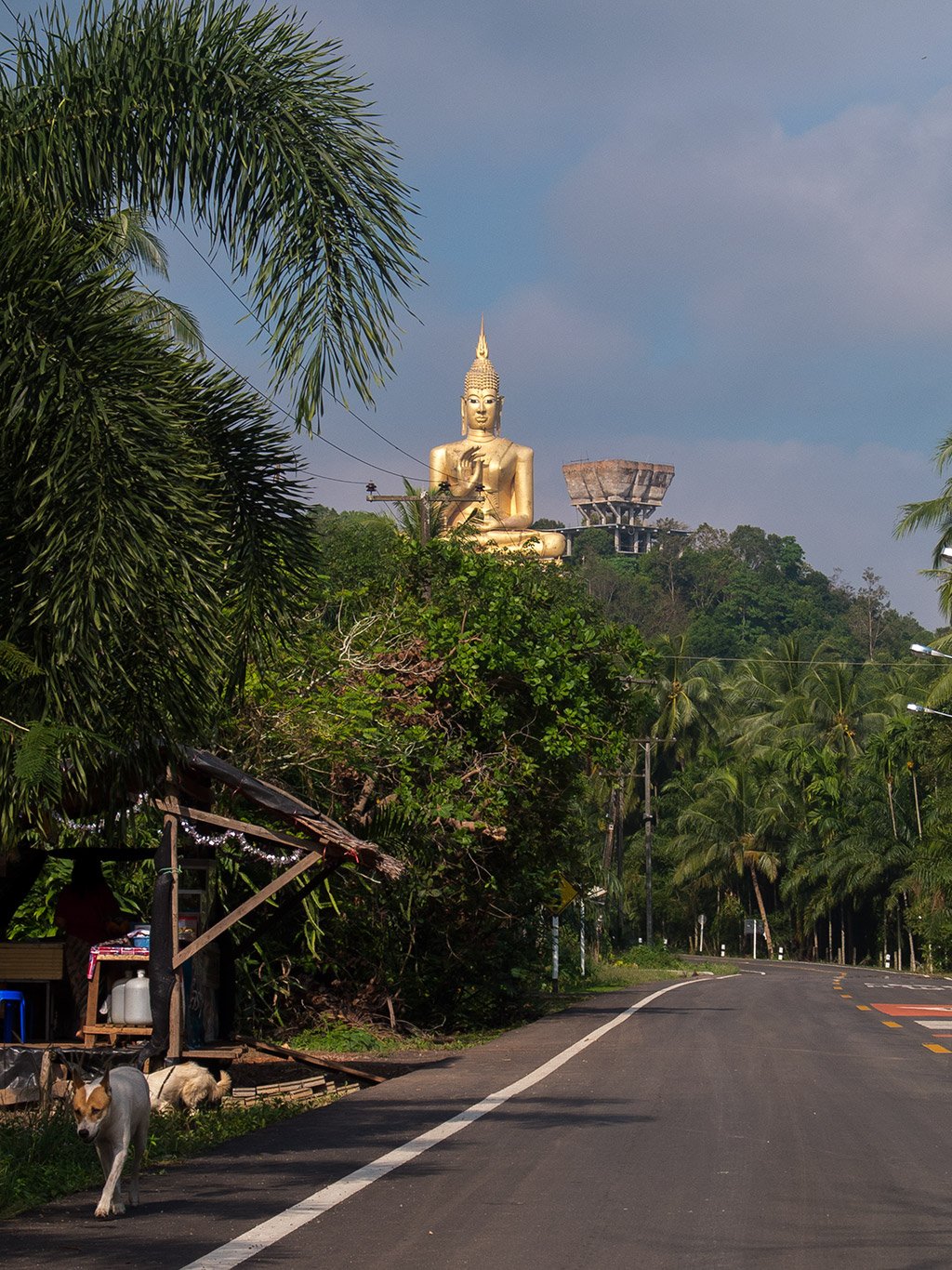 A short time after we got on the road again, we saw that huge Buddha on a hill. The big ugly thing made with concrete on its right looks like a giant water reservoir to me. They should have use the Buddha itself or paint that reservoir in golden color!