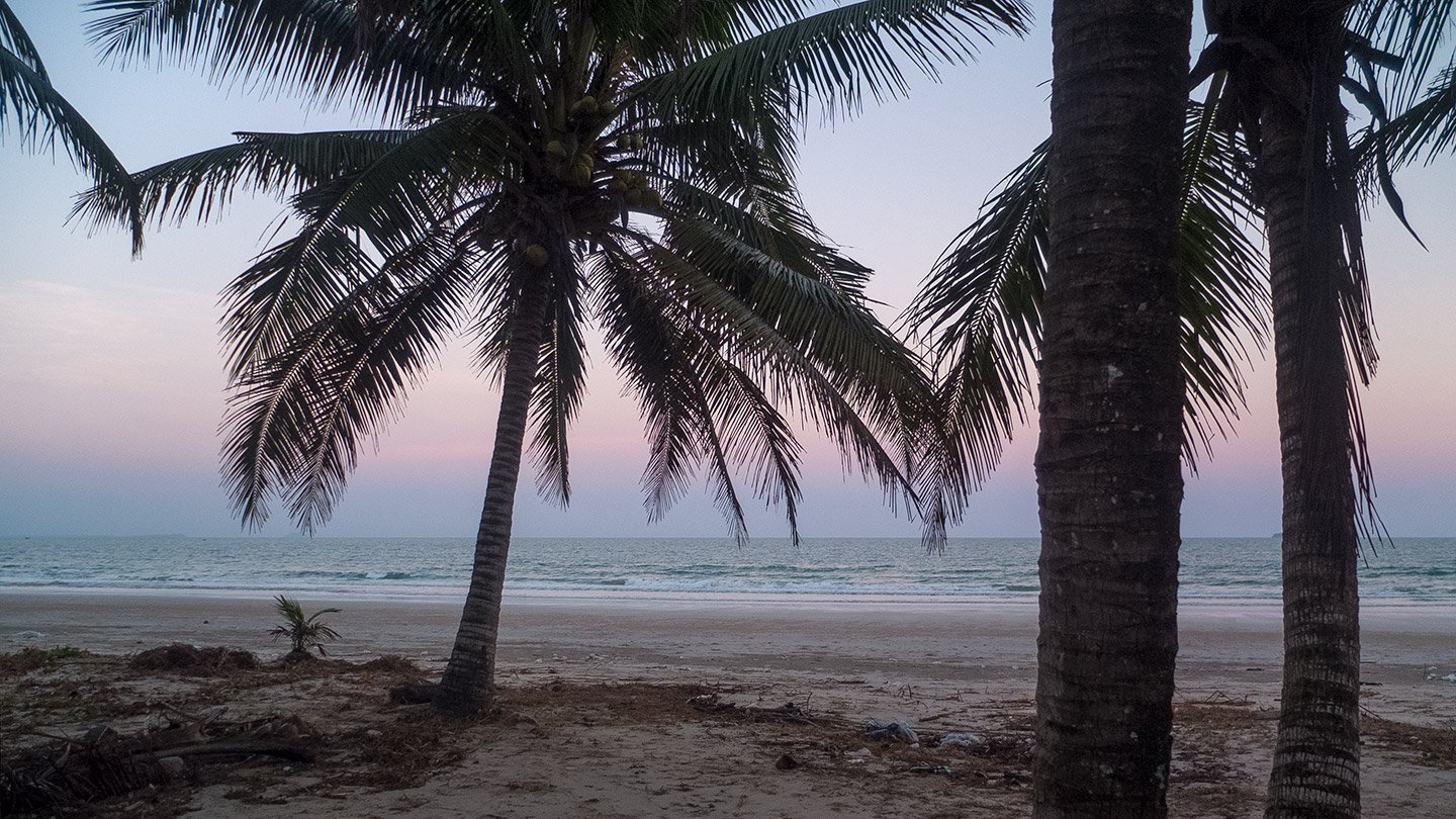 Today for the first time since Malaysia, we reached the east coast and the gulf of Thailand. The beaches here are not as touristy than the one in the south west, at least, not yet. We had to come back on the highway for a little while but we took the opportunity to stop at a petrol station, get some water, clean some clothes, have an extra shower and work in a cafe. The new deal now is to find the “Amazon Cafe” which have Wifi and plugs to charge all we need. Very easy life :-)