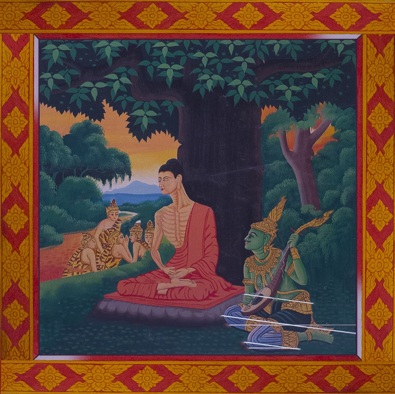 He tried to get away from everything he knew looking to find his answer. He would eat only 6 grain of rice per day. He tried holding his breath. He became very skinny and nearly died. But after all of that, he didn’t find any more answer. Siddhārtha was thinking about another way to get answers. Then he found a fig tree, sit close to it and started to meditate. He meditated for 49 days. People around, curious and amazed, took care of him.