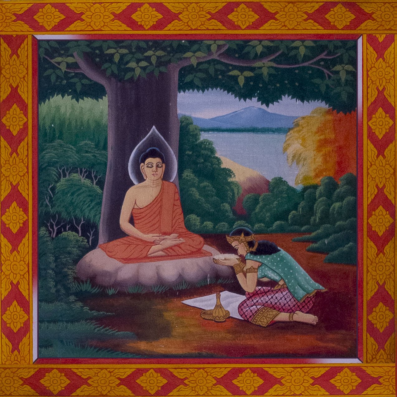 After that time, he said that his mind became pure and 6 years later he found the enlightenment (the meaning of life) and became Buddha. People came to visit him and offered him food.
