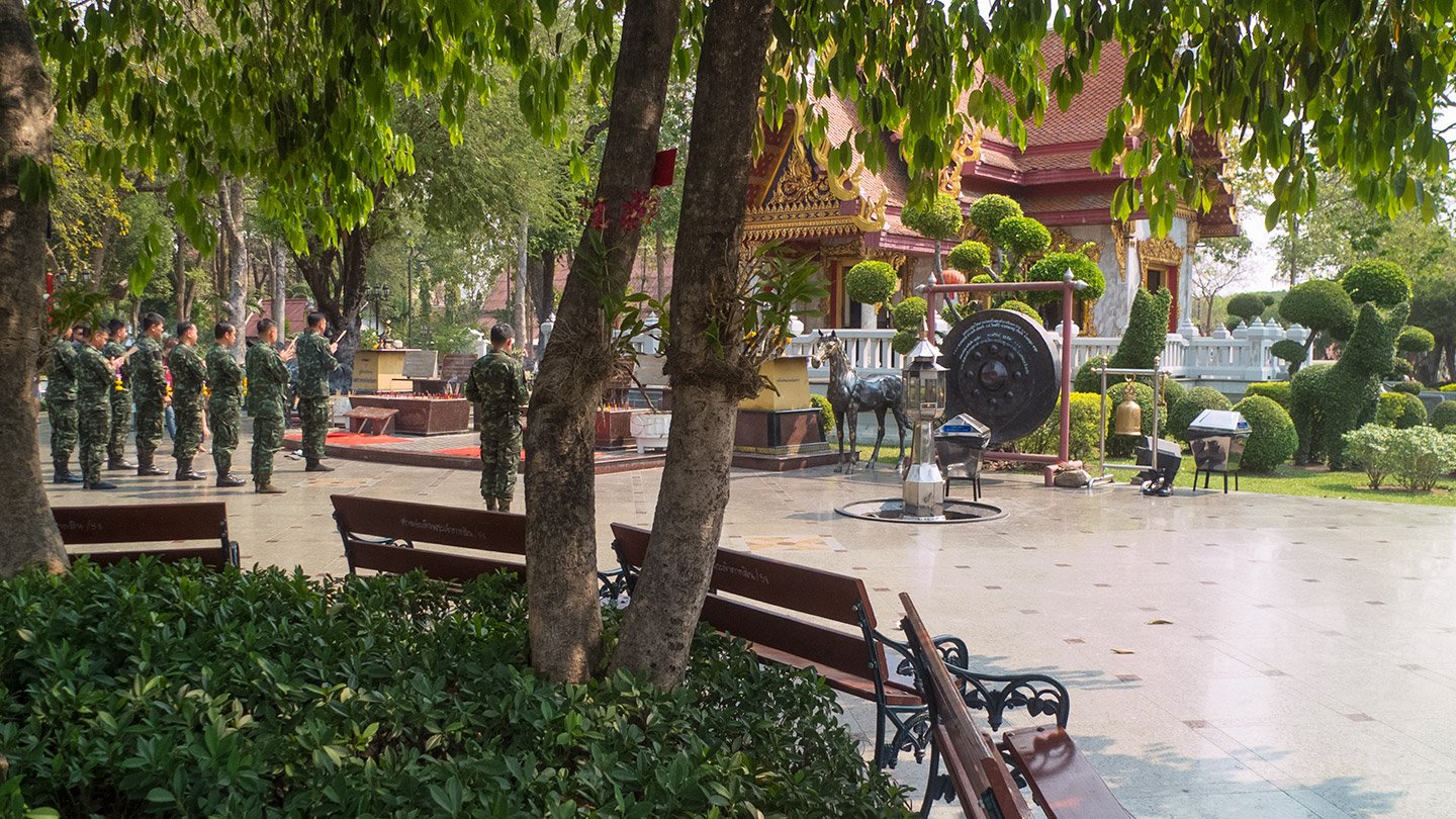 Today is another step towards Chiang Mai. The nights become slightly more fresh but that’s still not enough to use my 5°C sleeping bag :-) We have spent most of the day along the Ping river and visited a religious place when we arrived in Tak. This one as the particularity to have a huge collections of animals, mainly elephants and roosters.