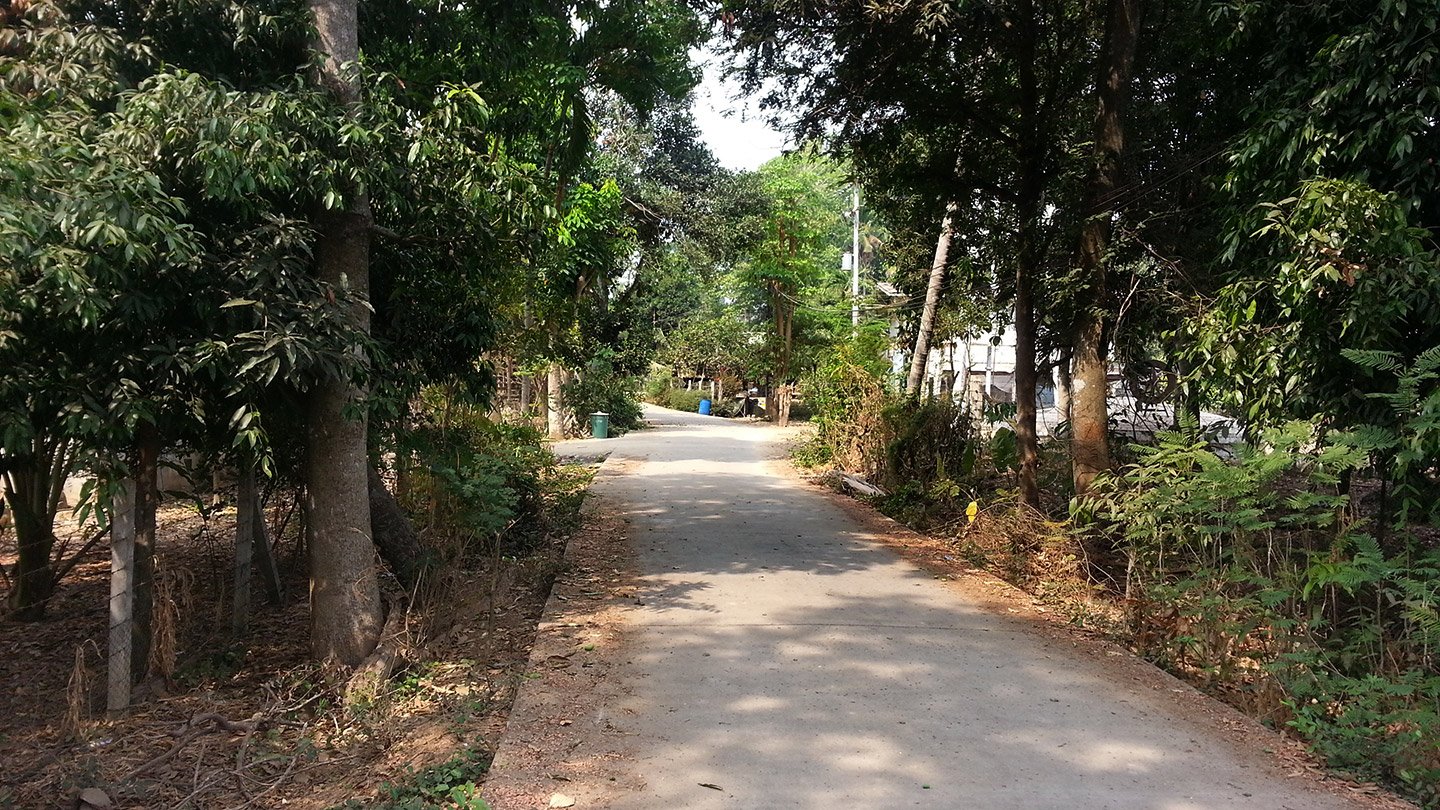 As always, we are cycling on a tiny and quiet road. There is plenty of beautiful houses and sometimes very basic one all mixed together.
