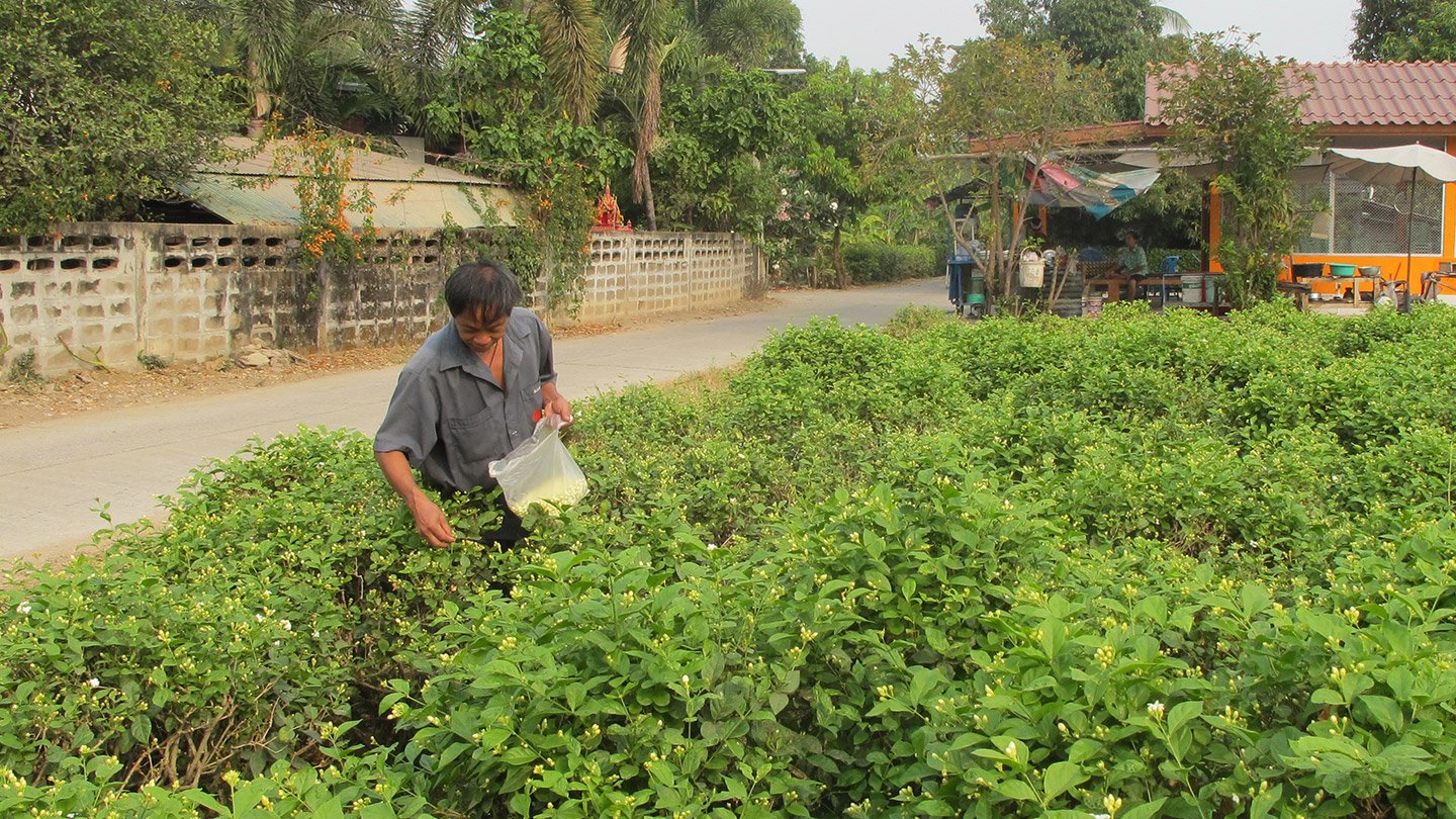 This guy is collecting flowers that did not hatched yet. People use them to make decoration as they smell very strong and nice obviously like the one Pita bought at the temple’s market few days ago.