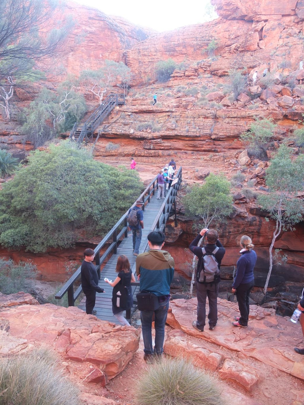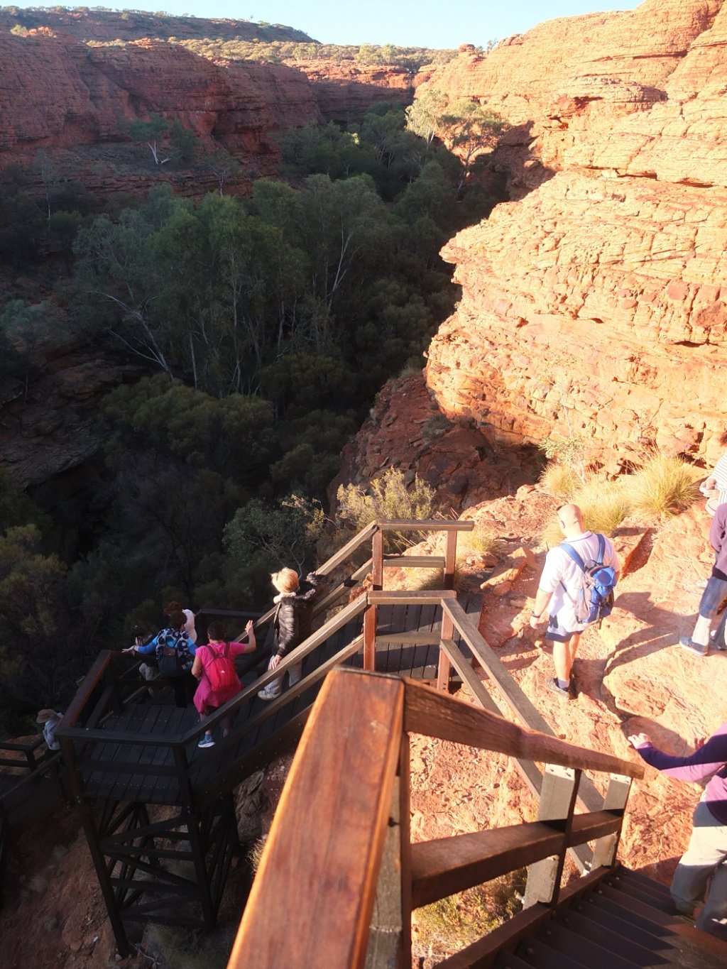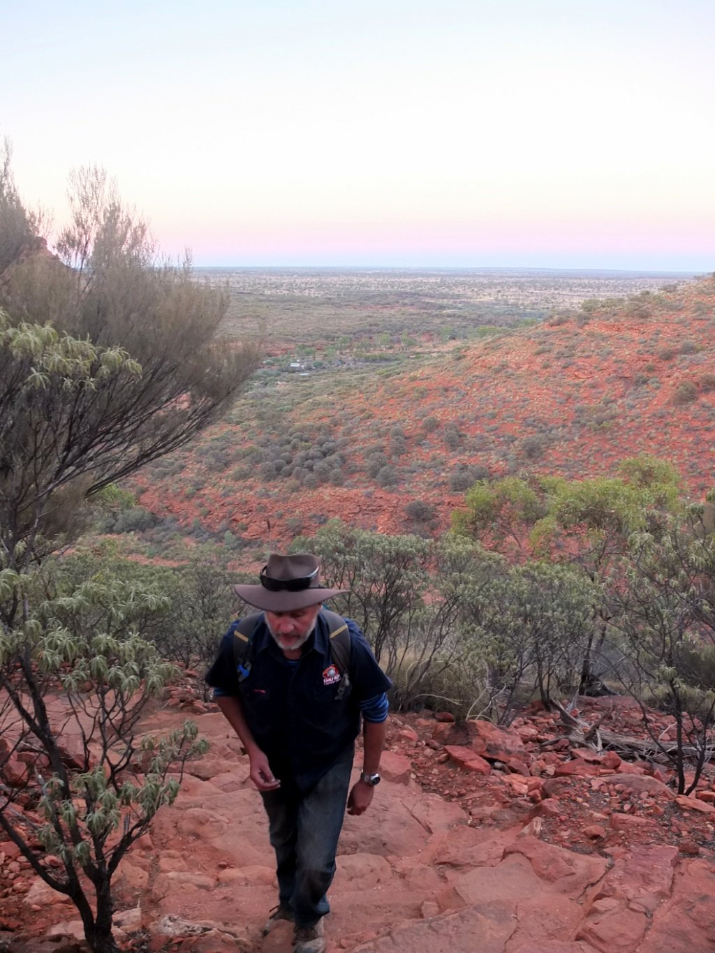 Third and last day of this very nice Emu Run Tour. As usual, we moved at 6am from the campsite and drove directly to Watarrka (Kings Canyon). We did the 3 hours ring walk which is again, different from Uluru and Taka Tjuta. There is about 500 steps to start then we stay onto the top almost all the time. That way we enjoy the view of the landscape several times. Finally we drove back to Alice Springs where I will spend another night in the backpacker and get my stuff back.
