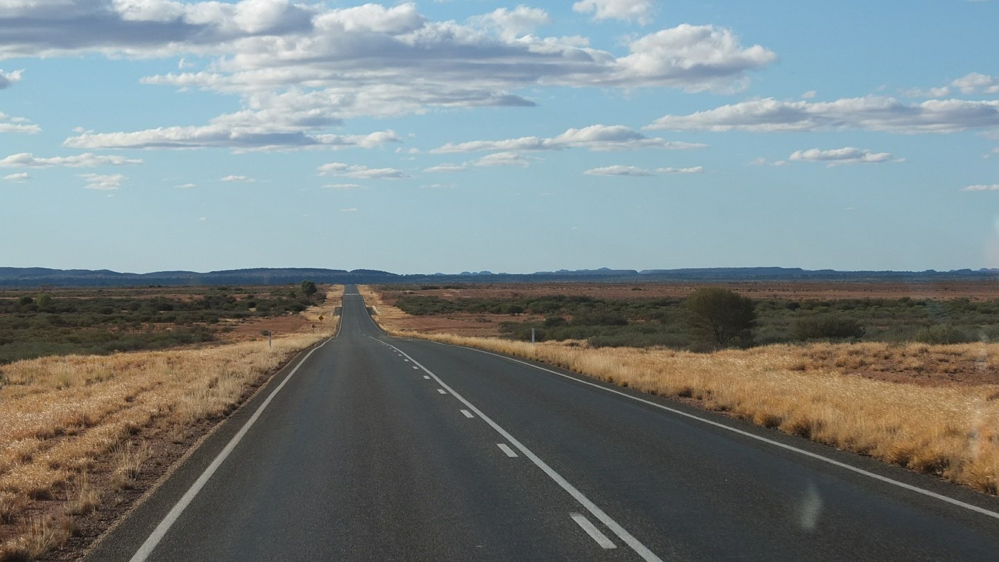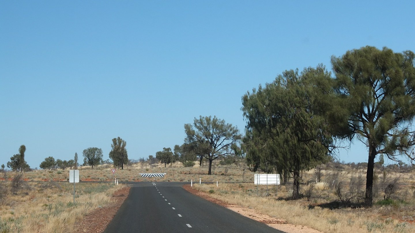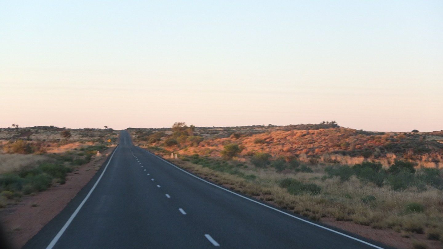We are reaching the main road going to the Stuart Away. Uluru is on the right, Stuart Away on the left. If we had a 4WD bus we could finish the loop and reach directly the Stuart Highway but this is not the case.