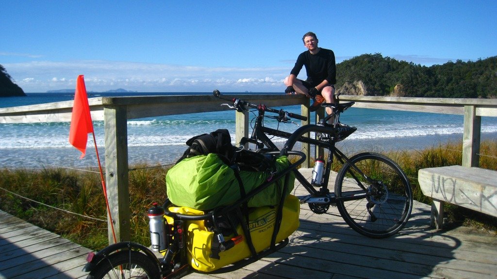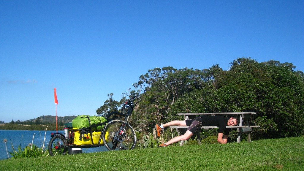 Avant de continuer ma route je demande aux deux kiwis si je peux pas empreinter le sentier longeant l’océan et qui va directement à whananaki mais ils me réponde qu’a vélo ca sera pas possible. Aìe! Je vais donc devoir faire une grand boucle de 25km peut-etre alors que le chemin doit en faire 9km. C’est bien dommage.